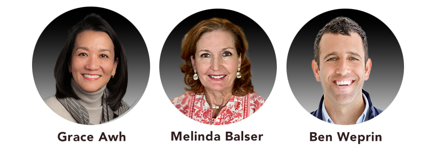 NASHVILLE, Tenn. (February 17, 2026)—The Frist Art Museum is pleased to announce that three board members have been elected to the Frist Art Museum Board of Trustees. The new members—Grace Awh, Melinda Balser, and Ben Weprin—bring abroad range of experience in the fields of law, education, real estate development, and hospitality. The new members join current Frist board members Phillip G. Billington, Clay Blevins, Ramon L. Cisneros, Kendra Deas, Elizabeth Shaughnessy Dennis, Billy Frist (chair and president), Bryan Frist, Bob Gordon, Donald R. Hardin Jr., Kent Kirby, Neil B. Krugman, Ken Levitan, Wanda Lyle, Will Meyer, Dee Patel, Tara Scarlett, Jamaal B. Sheats, John Smithwick, Deborah E. Story, Julie W. Walker, and Gail Carr Williams.