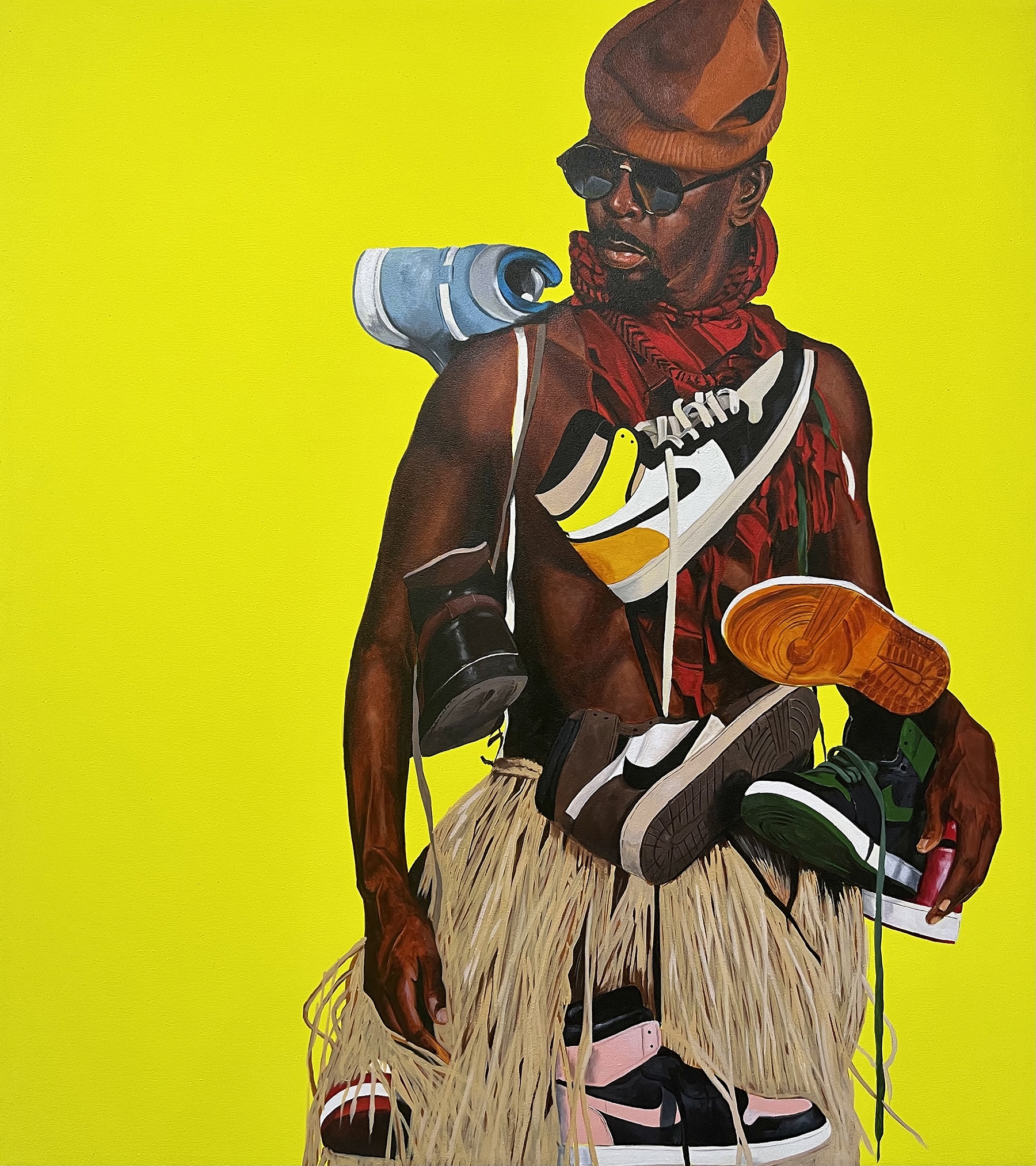 This Face Behind This Mask Behind This Skin presents the work of Atlanta-based artist and scholar Dr. Fahamu Pecou. The exhibition’s title reads like a mantra—an embodiment of being and becoming. Dr. Pecou’s work explores contemporary representations of Black masculinity and identity through painting, mixed-media sculpture, and critical theory. This exhibition brings together his recent series End of Safety, Real Negus Don’t Die, and We Didn’t Realize We Were Seeds and debuts a multichannel video installation featuring his short Afro-Surrealist film The Store.