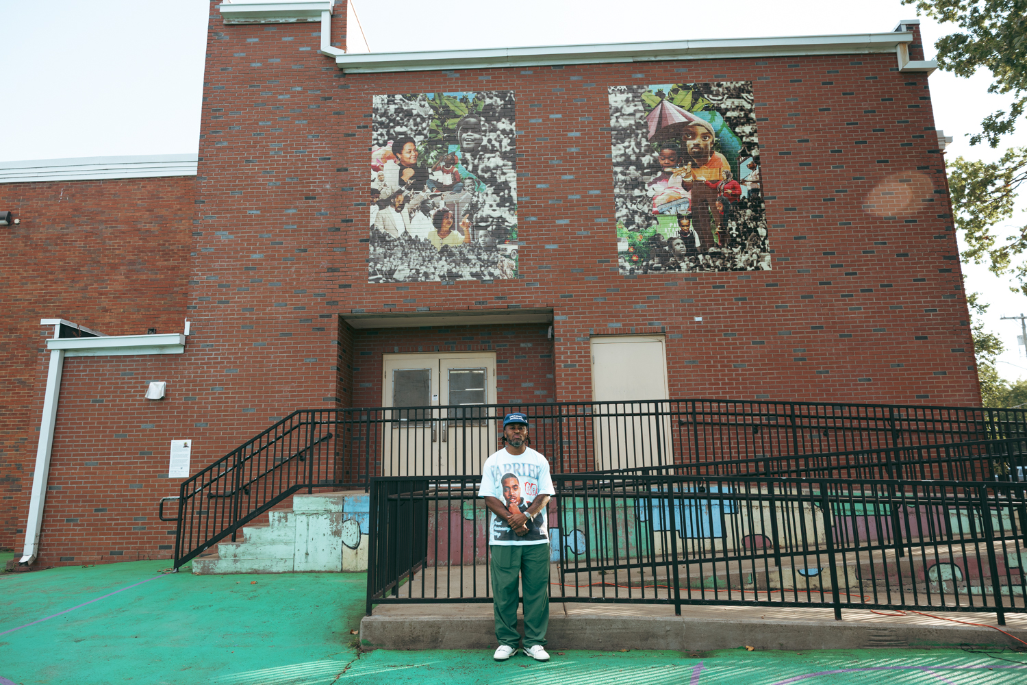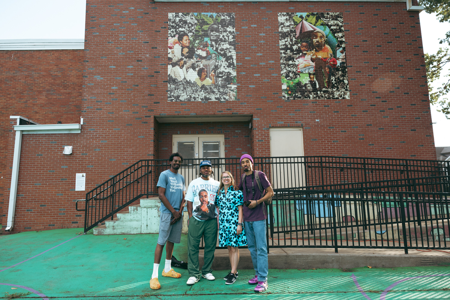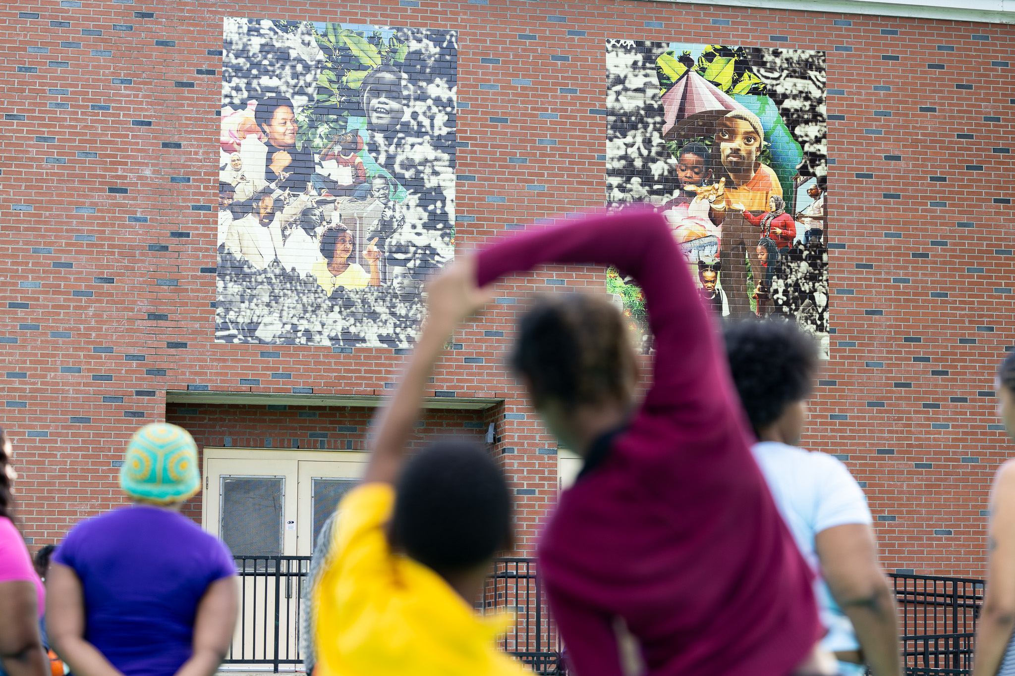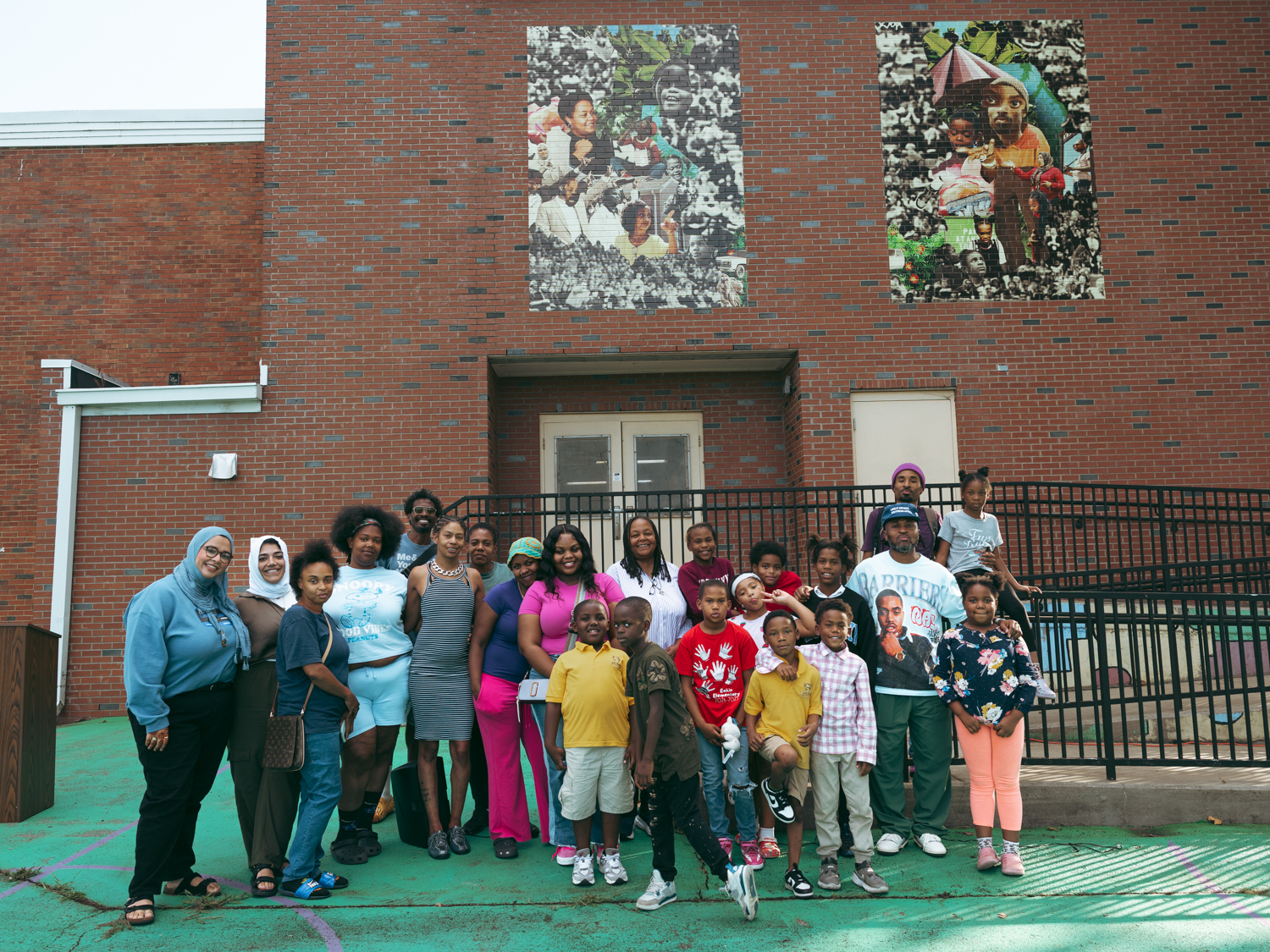 In partnership with Metro Nashville Public Schools, the Frist Art Museum unveiled new outdoor mural works by Houston-based artist Tay Butler in the Edgehill neighborhood on Friday, October 3. During one of several off-site public art initiatives related to our 2023 exhibition Multiplicity: Blackness in Contemporary American Collage, Butler, one of the artists featured in that exhibition, and Nashville-based artists DaShawn Lewis and Joseph Love led student participants of the Edgehill United Methodist Church’s Brighter Days After School Tutoring program in art-making projects. Drawn from those projects, the resulting three collage murals feature members of the Edgehill community and are now installed on the MNPS Visual and Performing Arts Building in William Edmondson Homesite Park & Gardens and inside the Edgehill Branch Library.