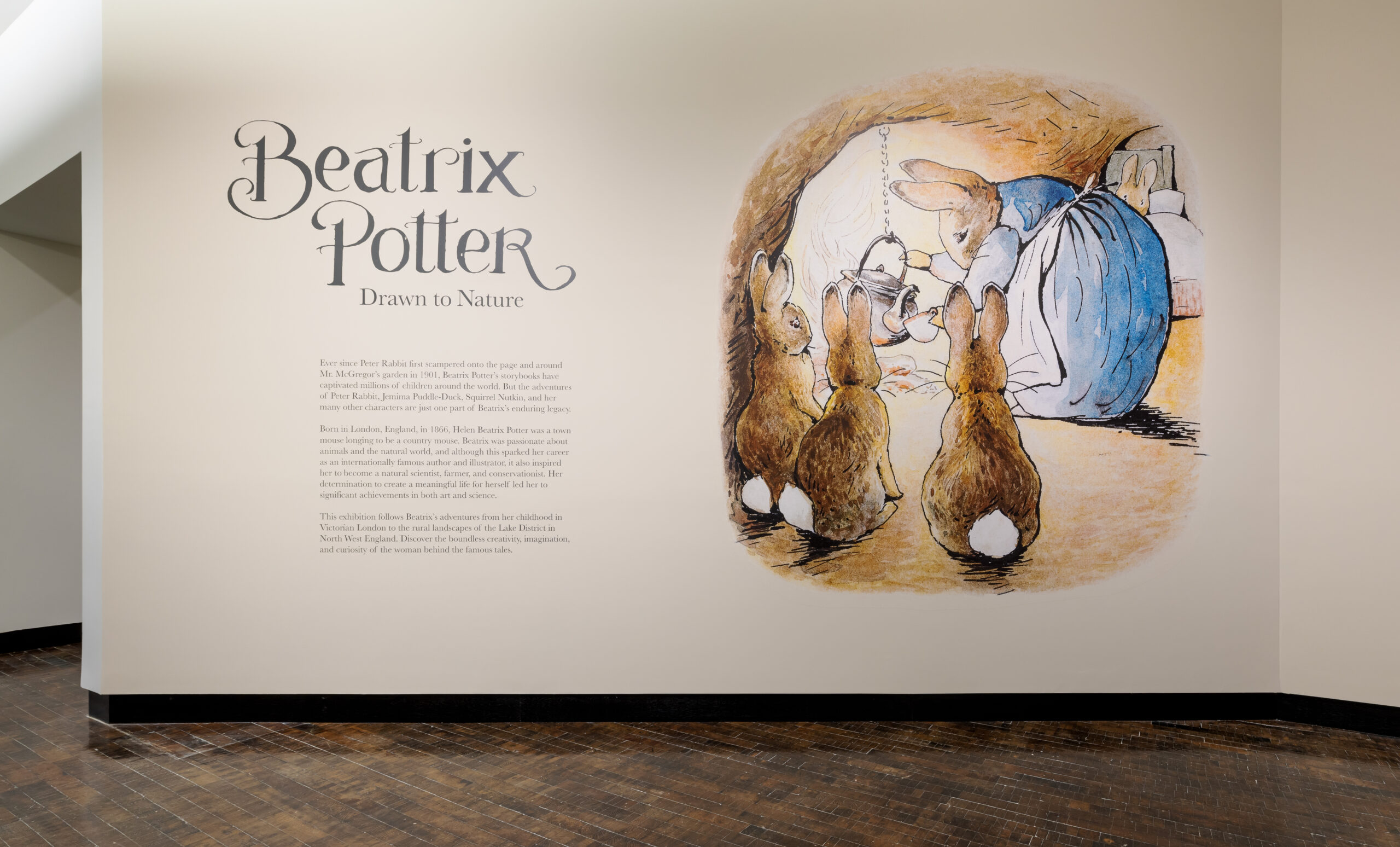 This magical, family-friendly exhibition celebrated the creative and ecological achievements of the beloved English author and illustrator Beatrix Potter (1866–1943). In The Tale of Peter Rabbit, first self-published in London in 1901, and twenty-two other children’s books, Potter imagined an enchanting world of animals and gardens.