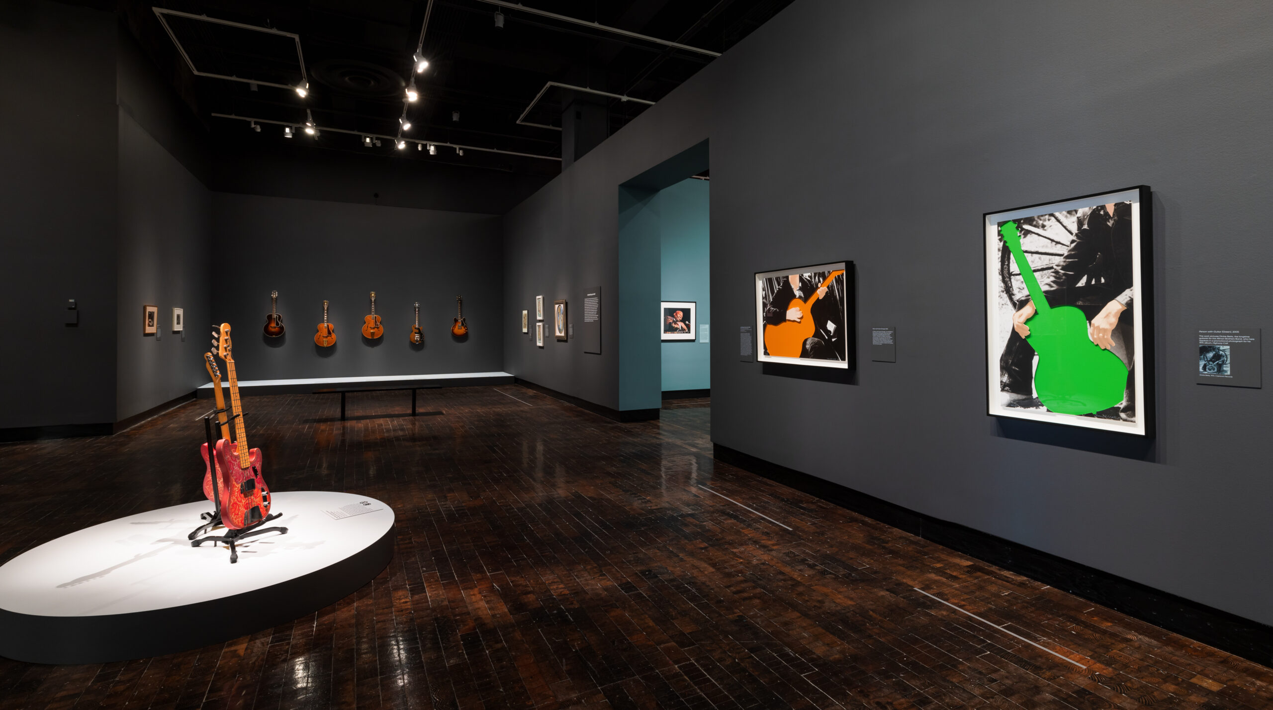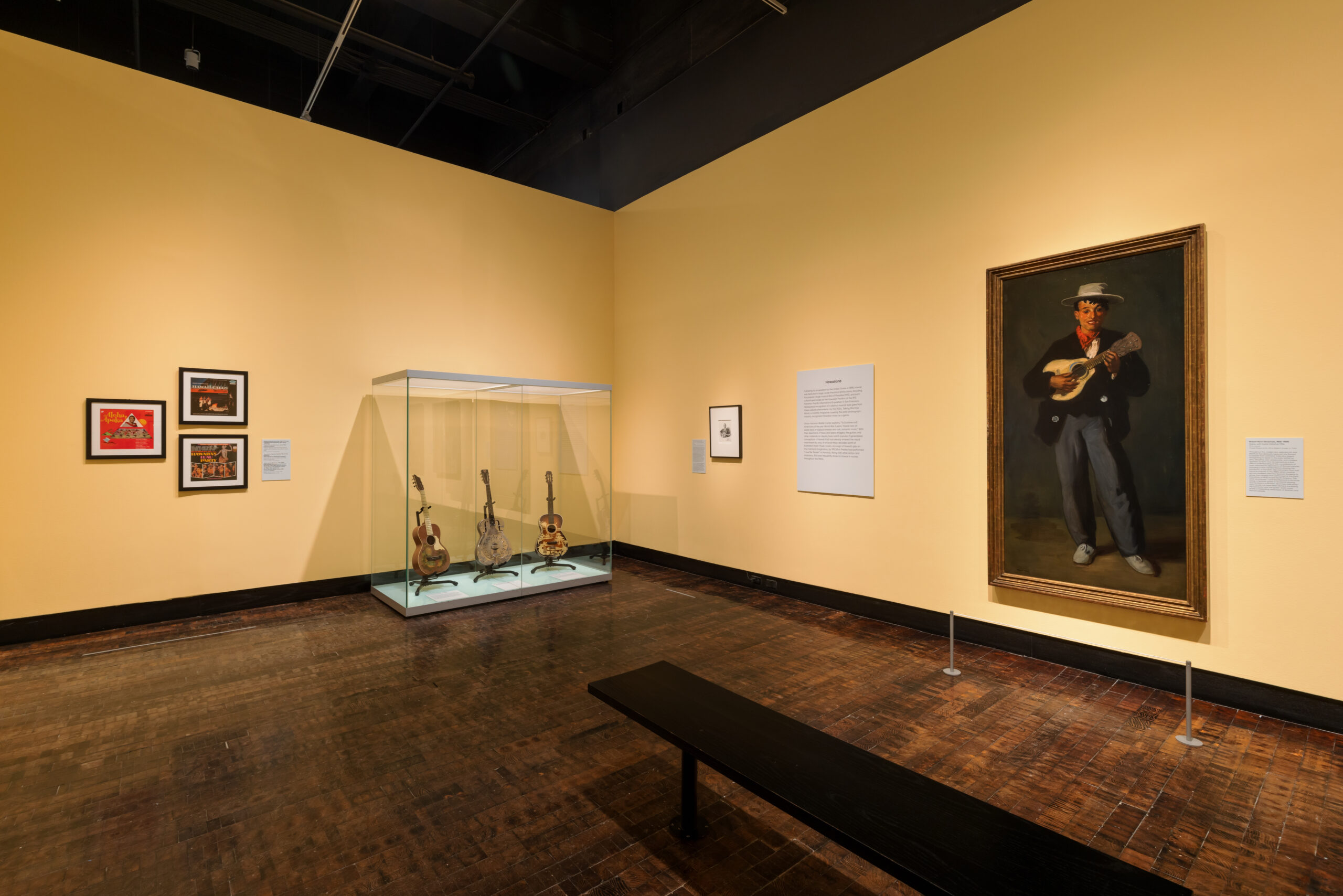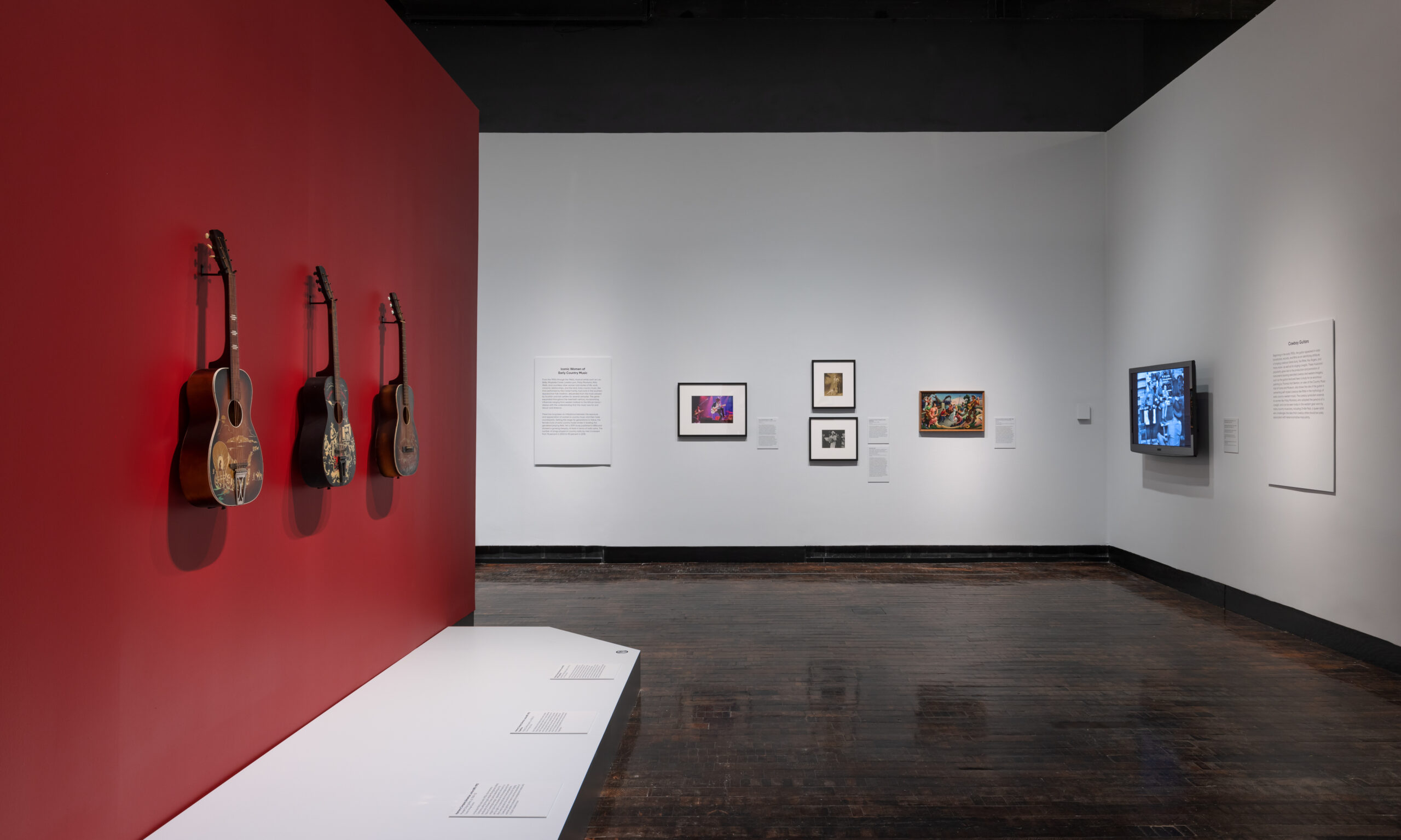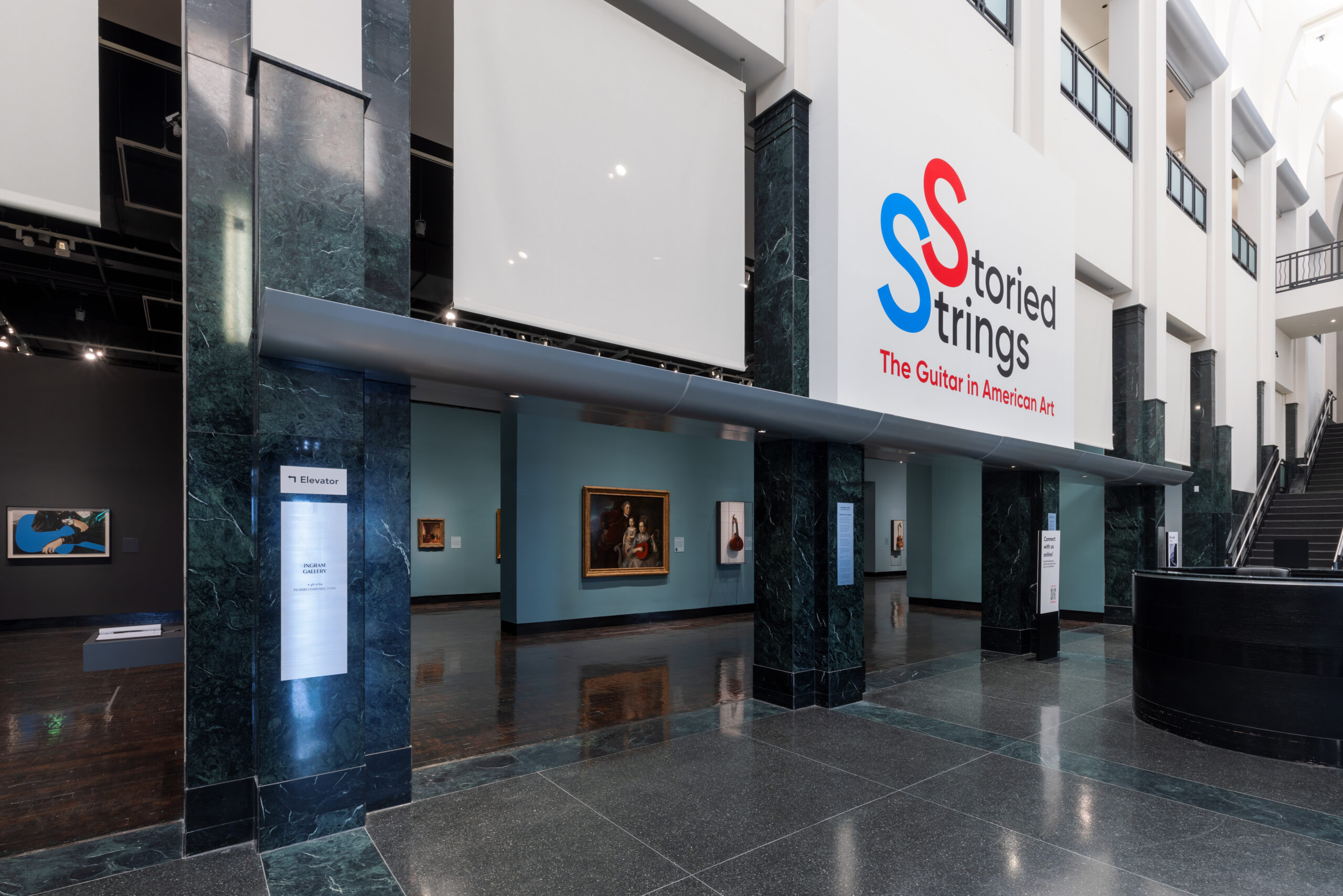 Storied Strings: The Guitar in American Art was the first exhibition to explore the instrument’s symbolism in American art from the early nineteenth century to the present day. Featuring over one hundred works of art and dozens of exceptional instruments, the exhibition demonstrated that guitars figure prominently in the visual stories Americans tell about themselves. Works by artists such as John Baldessari, Thomas Hart Benton, Lonnie Holley, Dorothea Lange, and Annie Leibovitz and seminal instruments by Fender, Gibson, and C. F. Martin & Company showed how guitars have served as symbols of American history, cultural attitudes, identities, and aspirations.