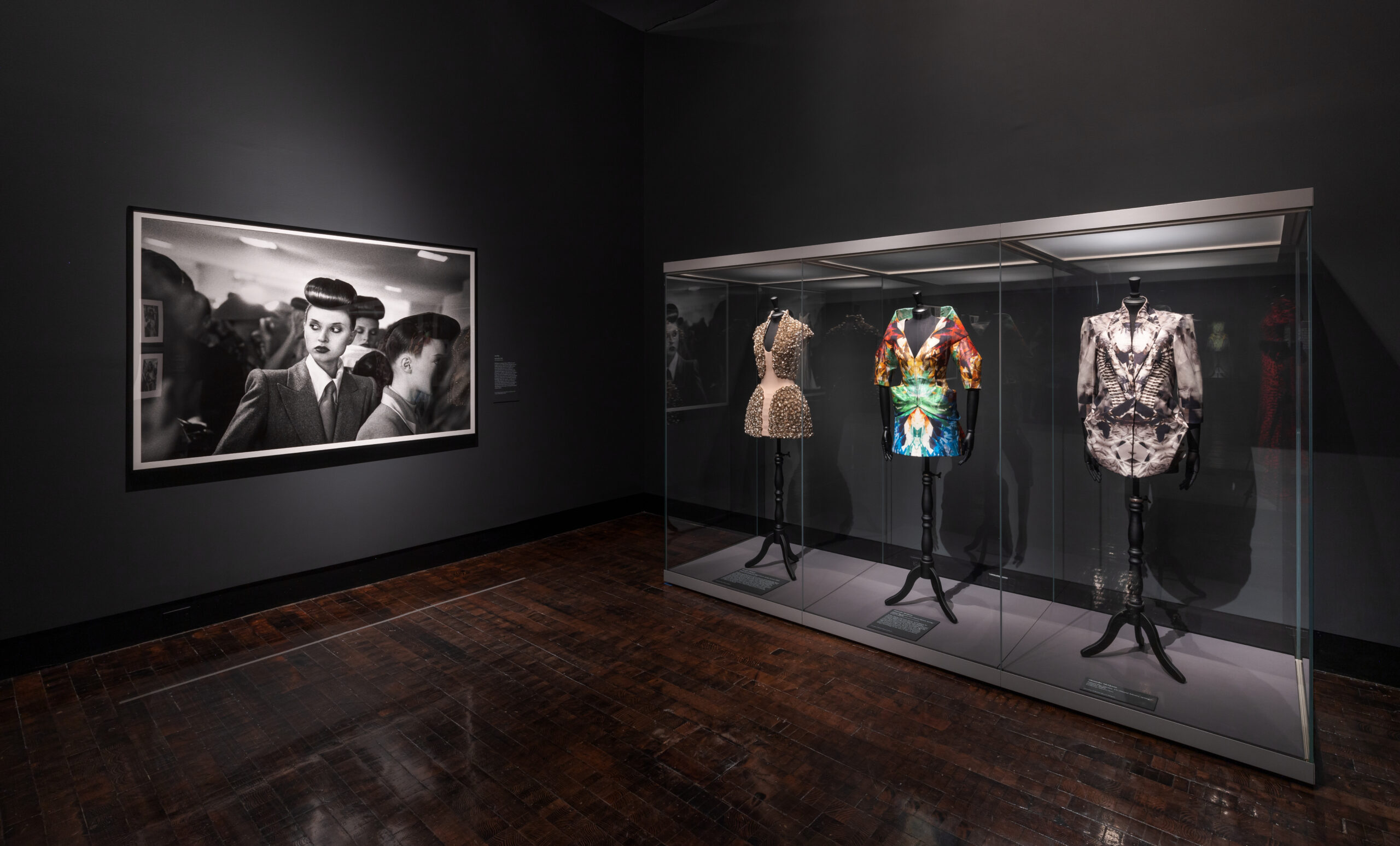 Lee Alexander McQueen & Ann Ray: Rendez-Vous offered a rare glimpse into the life and mind of McQueen and introduced French photographer Ann Ray (b. 1969) to audiences in the United States. With a partnership built on friendship and trust, Ray was provided unfettered access to McQueen’s world and captured everything from contemplative moments in the design studio to models posing backstage. In total, she shot forty-three collections over the course of thirteen years, creating a massive body of work and an indelible record of McQueen’s creative process at his namesake label and during his tenure as creative director at Givenchy.